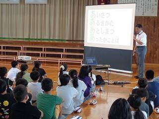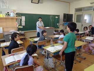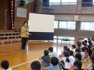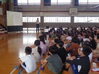 7月10日(木)、今日は1年生の「よのなか教室」でした。講師にリバーパル五ヶ瀬川 館長 山田大志 様をお迎えして、水の大切さや魚の生態、食物連鎖などについて、絵や写真で1年生にわかりやすく教えてくださいました。子どもたちの身近な生物への興味関心が一層高まるとともに、生物を通して命について考えることのできる時間となりました。お忙しい中ご指導いただきました 山田大志様に心より感謝申し上げます。誠に有り難うございました。
