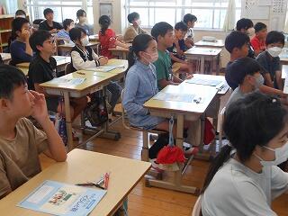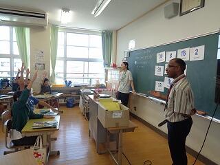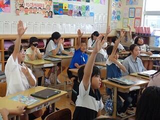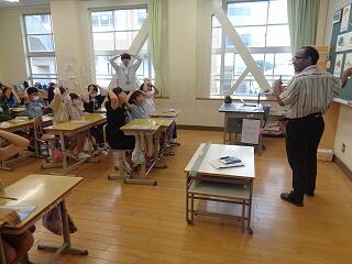 5年生は外国語科です。クレイトン先生も一緒にクイズを楽しんでいました。