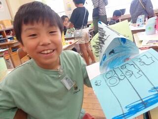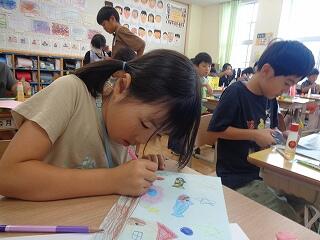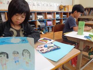 3年生は図画工作「立ち上がった絵のせかい」で、自分のイメージする世界を夢中で描いています。