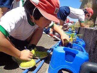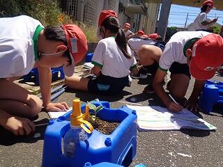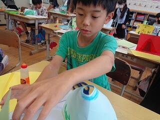 6月30日(月)、1年生の生活科「なつとなかよし」でシャボン玉遊びをしました。家からシャボン玉づくりの道具をいろいろ工夫して持ってきていました。風に乗って遠くに飛んでいくシャボン玉たちとおいかけっこしたり、おおきなシャボン玉をつくってみたり・・・暑さも忘れて夢中で楽しんでいました。