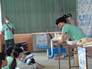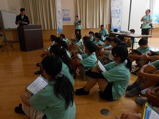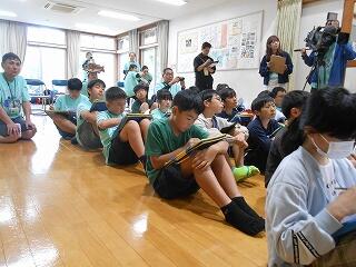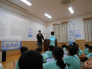 6月9日(金)6年生の「海と日本プロジェクト」第3弾が開かれました。この日は、「干潟が支える海の豊かさを知る」ことを目標に、土々呂の干潟へ向かいました。あいにくの雨で、雨天プログラムでしたが、土々呂のコミュニティセンターで、村瀬先生から「干潟の役割」について興味深い講話をいただいたり、「門川環境カルタ」で楽しいレクリエーションをしたりして、学びを深めました。海の豊かさについて、どんどん知識を得ている6年生です。村瀬先生、mrt宮崎放送の皆様、そして関係者の皆様に心より感謝申し上げます。