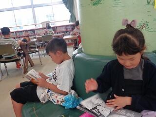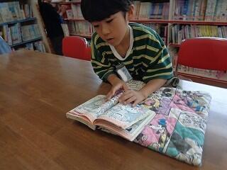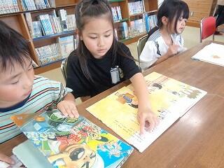 2年生は図書室で読書の時間です。好きな本を選んでゆっくり読んでいます。