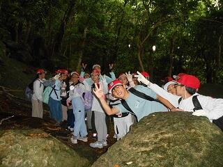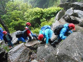 〇雨天のため、滝まで登って下山し、昼食になりました。