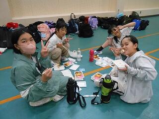 〇出し物~一緒に宿泊している他2校の児童と一緒に出し物で盛り上がりました。