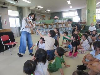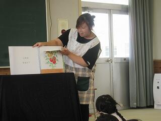 6月5日(木)3校時に、図書ボランティア「緑の風」の皆様によるお話会が1年生と2年生の合同で開かれました。たくさんのお話の中で、鍵盤ハーモニカでの演奏や、ゆび人形、手遊び、紙芝居など子どもたちを楽しませる仕掛けが盛りだくさん!たちまちお話の世界に引き込まれてあっという間にあたたかい時間が過ぎていきました。学期1回のわくわくするお話会、2学期は中学年、3学期に高学年です。入念なご準備、愛情いっぱいのお心づくしに心より感謝申し上げます。