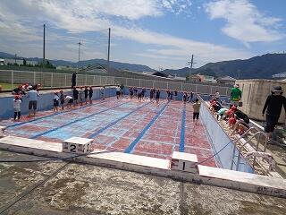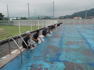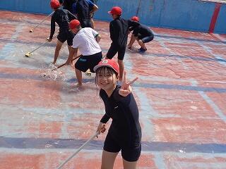 6年生のプール開きです。小学校最後のプール学習、たくさん思い出をつくってほしいですね。