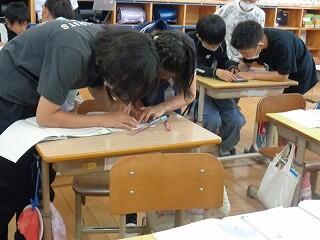 7月10日(木)、4年生が理科「夏の夜空」で星座早見盤の見方の練習をしていました。教室を暗~くして、わくわくしながら一生懸命にらめっこ!友達や先生に発見したことを伝えずにはいられない様子でした。