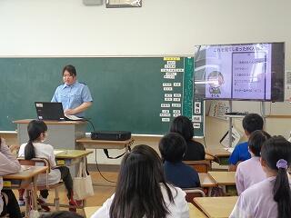 6月11日(水)、延岡警察署少年サポートセンターの方をお招きして、3~6年生を対象に非行防止教室を開きました。3年生は「万引き」について、4~6年生は情報モラル「インターネットの使い方」において、言葉や書き込みによる犯罪等について学びました。多様性を尊重し合う豊かで幸せな社会づくりに参画する力を身に付けてほしいと願っています。延岡地区サポートセンターの皆様、お忙しい中ご指導くださり、誠に有り難うございました。