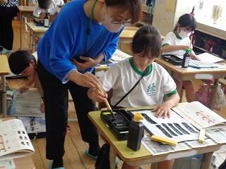 3年生の音楽の時間に、リコーダーの練習をがんばっていました。初めて習うリコーダーの3年生、だんだん上手になってきました。