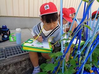 6月19日(木)、1年生はあさがおの観察記録をしています。あさがおの花がついに咲いたお友達もいました。あさがおの花の誕生が楽しみな1年生です。