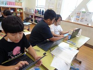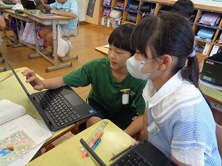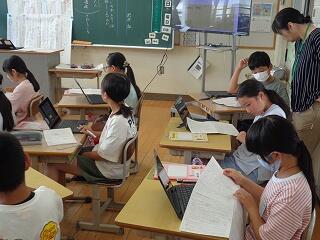 5月19日(月)の授業の様子です。5年生は社会科で「日本の地形や気候」の学習に入っています。川の様子をタブレットで検索していました。