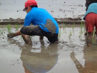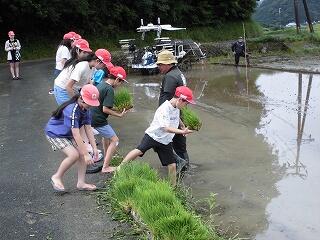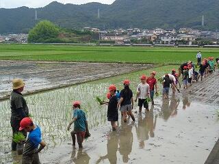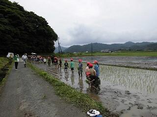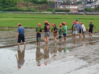 6月23日(月)に5年生の田植えが行われました。本年度もJA加盟農家の山内様に田んぼをお借りして、JA青年部の皆様方に教えていただきながら、田植えの実習を頑張りました。生産者の願いや喜び、苦労などを肌で感じることができる貴重な体験。苗が元気に育つ収穫の時期が楽しみです。山内様、JA青年部の皆様、ご指導誠に有り難うございました。