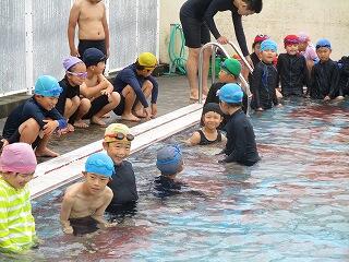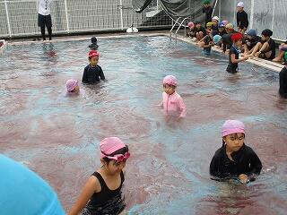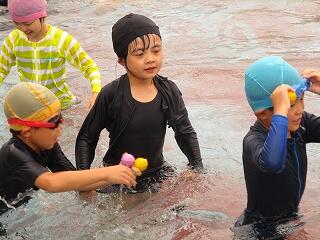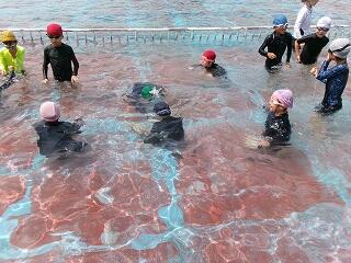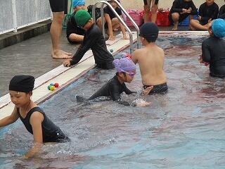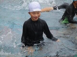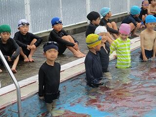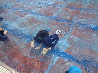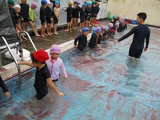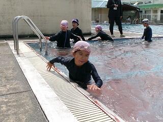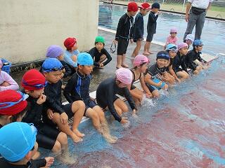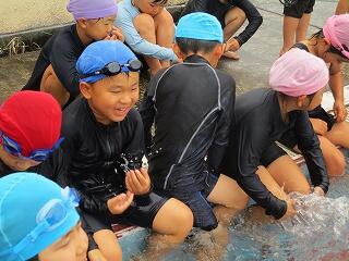 6月25日(水)、3年生のプール開きの日でした。この日は小プールを使って水に慣れる活動を楽しみました。