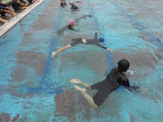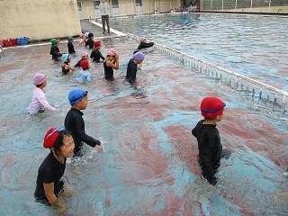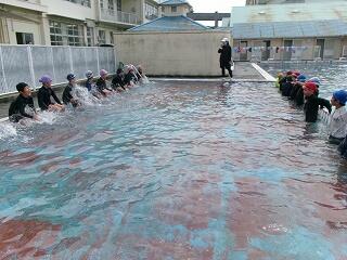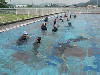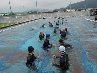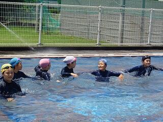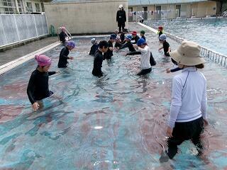 6月27日(金)、5年生のプール開きの様子です。水に慣れる活動を中心に、潜ったり浮いたり、蹴伸びやバタ足をしたりしながら気持ちよく活動ができました。