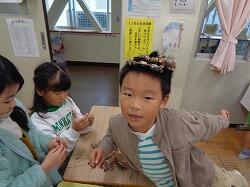 12月5日(火) 1年生が生活科で「だいすき!コレクションランド」を開きました。こんは、秋を探そうで集めたドングリを使って、アクセサリーやゲームをつくり、みんなを招待して遊ぶというものです。たくさんのドングリで、すてきなアクセサリー、マラカス、かわいいマスコット、的当て、けん玉、魚釣りゲームなどをつくっていました。そして、先生方や2年生に招待状を配り、応対もしっかりしながらみんなをもてなしていました。1年生とは思えないクオリティーの高さで、たくさんの笑顔があふれていました。