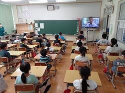 7月29日(金)1学期の終業式があり、ほかの地区に1週間遅れて延岡市もようやく夏休みに入ります。終業式は、感染症や暑さ対策のためオンラインで実施しました。3年生と5年生の代表児童が一学期を振り返り、自分の目標に対する成長の実感をしっかりと発表してくれました。意見発表児童の一人が欠席でしたが、前もって撮っておいたビデオで参加しました。校歌伴奏もビデオで撮り、対面で実施するよりも子どもたちの活躍をしっかり披露ことができました。校長からは、「ありがとうがいっぱいのおうち」ということで、夏休みには家の仕事に積極的に取り組んでほしいという話がありました。生徒指導担当からは、命を大切にしてほしいという話があり、子どもたちは真剣に聞いていました。