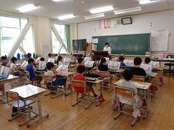2学期が始まって2週間経ちました。まだまだ暑い日が続いていますが、子どもたちは負けずに勉強を頑張っています。今日は、6年生は、理科や外国語を、1年生は、音楽で鍵盤ハーモニカに取り組んでいました。どこも真剣に楽しく学習していてすばらしいです。