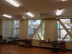 9月7日(木) 生活科室と集会室に空調設備を取り付ける工事が行われています。これは、避難所開設の際に使う教室ということで空調設置が決まった事によるものです。どちらの教室もいろいろな活動に使われることが多いのですが、空調がなかったため、特に夏場は活用できない状況でした。空調設備がつくことで、年間を通して活用できるようになるのでとてもありがたいことです。