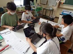 9月8日(金) 6年生がプログラミングの学習をしていました。今日は、ペッパー君を動かすプログラミングを考えるという内容です。言葉や動き、その速さ等、自分の思いのままにペッパー君が動くとあって、子どもたちは、集中して楽しそうに取り組んでいました。