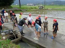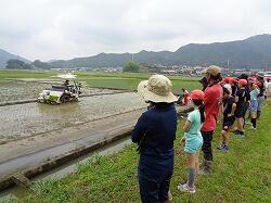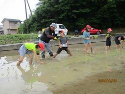 6月20日(火) 5年生が田植えの体験をしました。社会科で米作りの勉強をして、総合的な学習で課題をもって取り組んでいます。農家の方とJAのみなさんのご協力で、田んぼを貸していただき、米作りについて学びを深めます。はじめは、裸足で田んぼに入る感触に戸惑い気味でしたが、いつの間にか泥だらけになっている子どもたちも見られました。楽しかったという感想がたくさんありました。米作りの大変さや、農家の方の米作りにかける想いなどにも気付いてくれたことと思います。10月の稲刈りが楽しみです。