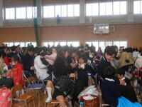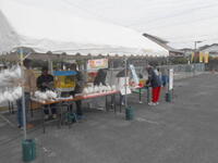 体育館の外では、地域の方々の行事で、餅つき披露や、綿菓子販売、ゲームコーナーなどが催され、まさに地域と一体になった時間が展開されました。おやじの会の方々も参加されていました。