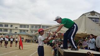 表彰式~一人ずつ名前を呼ばれて立ち、代表で優秀賞の行事さんが前で表彰を受けました。