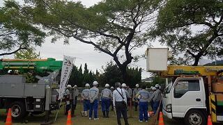 10月20日(月)、本校のグラウンドの遊具側の栴檀の木の枝を、クラフティア(旧 九電工)様が剪定をしてくださいました。本校の遊具の後ろに立っている栴檀の木は、今や遊具の上に大きく覆い被さるように伸びてきており、成長した木の枝が折れる危険性についても危惧していたところです。このたび、クラフティア様の地域貢献ボランティア事業「さわやかコミュニティ旬間」の恩恵に預かることができ、おかげさまで危険を取り除くことができました。残っている枝の状態も良いようで、安全かつ木陰も残る状態になっており、これからまた安心して教育活動ができます。クラフティア様の地域貢献のご活動に対しまして、心よりの敬意と感謝を申し上げます。大変お世話になりました。有り難うございました。