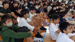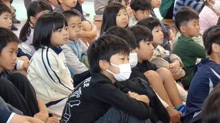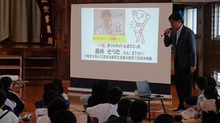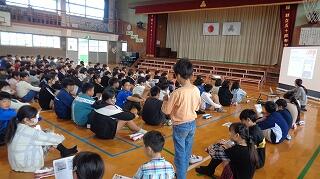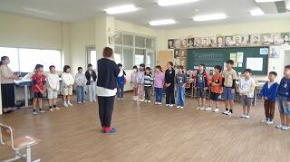 10月23日(木)は全校朝会の日でした。校長先生から「やる気スイッチ」についてお話がありました。その中で、わくわくする目標をもつことや、すき間時間を活用して小さなことをコツコツ積み上げていくことの大切さが説かれました。その後、新しく来られた事務室の中山先生を子どもたちに紹介し、みんなで中山先生と挨拶をしました。中山先生、これからよろしくお願いします!