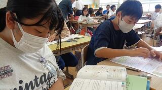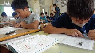 6年生は算数の前単元のテストが返却されて、復習をしていました。