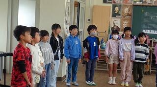 3年生は音楽です。来月の学習発表会に向けて合唱の練習をしていました。パートに分かれて、いろんな振り付けもしながら元気に歌います。
