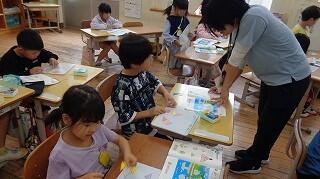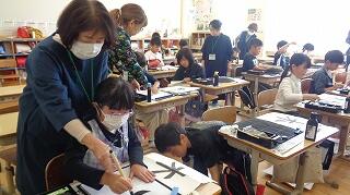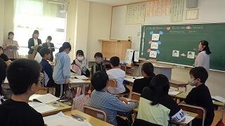 5年教室は、外国語の学習「Where is the station?」が始まりました。道案内の仕方などこれから楽しみです。