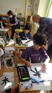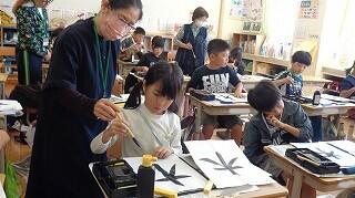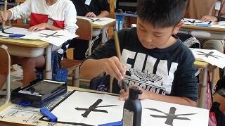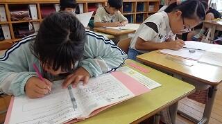 10月29日(水)、3年生は書写の学習です。「木」の左右のはらいを黙々と練習していました。