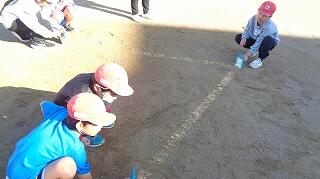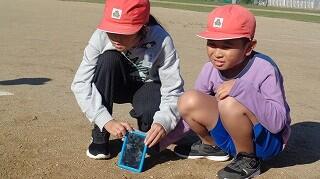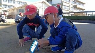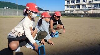 10月28日(火)、3年生が運動場で理科「光のすすみ方」の学習をしていました。鏡で太陽の光を反射させて、はね返した日光の道筋をつないでいきながらどのように進むのかを確かめていました。実際に光を見ながら「まっすぐだ~」と声を上げる3年生の様子が見られました。