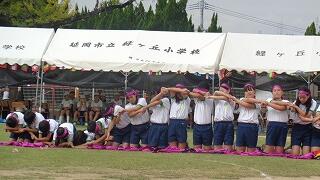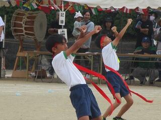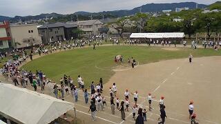 【ばんば踊り~ふるさと延岡の伝統文化に、児童も、保護者の皆様も、地域の皆様も、そして初めて踊る皆様も、一緒にふれあい慣れ親しむ体験ができました。また、ばんば太鼓に挑戦した5、6年生ですが、毎日昼休みに、地域の江入 一義 様がお越し下さり、熱心にご指導いただきました。さらに、太鼓までお借りしていました。おかげさまで太鼓の音を力強く響かせる子どもたち!たくさんの拍手をいただくことができました。ばんば太鼓ご指導の江入様、そしてこれまで、1、2年生の体育でのばんば踊り練習ならびに全校練習でのご参加を賜りました地域の皆様、運動会当日参加いただいたたくさんの保護者の皆様、地域の皆様、ご来賓の皆様に心より感謝申し上げます。