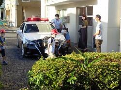 10月4日(火) 延岡市交通少年団児童による交通安全啓発活動がありました。交通少年団は、延岡市の小学生で構成され、商業施設で交通安全のチラシなどを配付するなど毎月交通安全に関する活動を行っています。今日は、交通少年団に参加している本校児童が、パトカーから安全な登下校を呼びかけました。地道ながらも積極的なこの活動が交通事故の抑制につながっていると思います。
