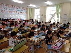 10月13日(木)6年生の社会では、「長篠の戦い」について学習していました。タブレットを使って当時の絵をじっくり観察し、気付いたことから織田信長がどのように力を付けていったかについて考えていきました。中には、自分で購入した歴史の本を持ってきて、みんなが知らないような情報を教えてくれる歴史好きの児童もいました。歴史は、調べれば調べるほどおもしろく感じるものです。歴史博士がたくさん生まれてきてほしいですね。