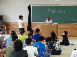 6月15日(水) ふるさと先生としてスポーツインストラクターの方が来られ、6年生に話をしてくださいました。たくさんのスポーツジム等を掛け持ちされて、大変アクティブに活動されている先生が、何をモチベーションとして頑張っておられるかなどを話してくださいました。また、実際に体を動かしながら体を動かすメカニズムについても説明してくださいました。難しい動きでも、繰り返していれば神経が発達しできるようになるという説明に、難しいこともあきらめないで頑張ってみようと思った子どもたちでした。前向きに生きるすばらしさを教えてくださったすてきなお話でした。