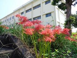 校舎の裏には、今年も彼岸花が咲きました。普段は全く気配を見せなかったのに、この時期になると一気に出てきて見事な花を咲かすのですから素晴らしい生命力です。校舎の裏にあるので、気付いていない子どもたちがいるかもしれません。季節の移ろいにも敏感な子どもたちを育てていきたいものです。