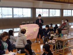 2月29日(木) 学校運営協議会の開催に合わせて、「緑ヶ丘小や緑ヶ丘地区がもっと楽しく、元気になるには何をすればよいか」というテーマで熟議を行いました。参加したのは、5・6年生児童、職員、保護者、学校運営協議会委員、コスモスプロジェクトボランティア、地域の方総勢90名ほどです。まず、6年生が五つのグループに分かれて総合的な学習の時間に考えた、まちづくりのアイデアについてタブレットを使って説明しました。その後、10のグループに分かれて自分の考えを付箋に書き、それについて話を深める活動をしました。様々な立場からの意見を聞くことができ、たくさんのアイデアが出ました。このような会は初めての開催でしたが、こんなにも熱い熟議になるとは。緑ヶ丘の子どもたち、保護者、地域のみなさんの意識の高さを感じ、さすがだと思いました。今日出された意見は、それぞれの立場で、どのようにすれば実現できるかを考えて進めていきたいと思います。ワクワクがあふれるすばらしい熟議になりました。参加されたみなさん、ありがとうございました。