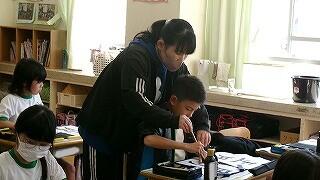 1年生は算数で大きいかずの勉強をしています。数え棒を使って数え方を習っています。