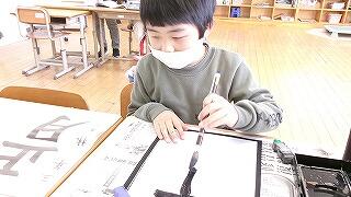 3年生が2~3校時に新年書き初めを行いました。「正月」の文字を習います。書写はげまし隊の先生、3学期もよろしくお願いいたします。