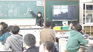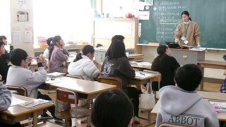 3年生は外国語活動「What's this?」です。クレイトン先生、3学期から来られる外国語専科の山田先生も一緒に学習です。