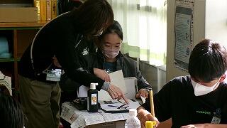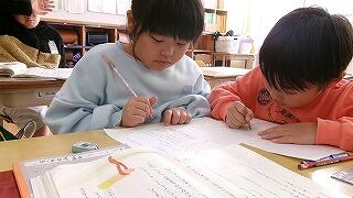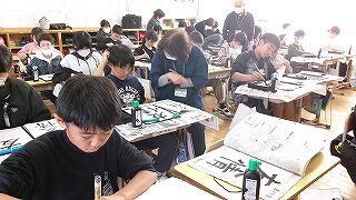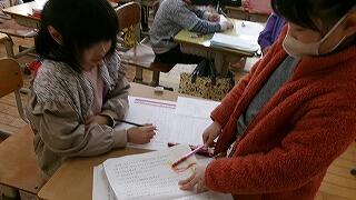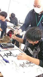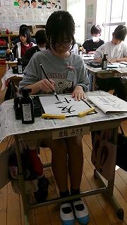 6年生~書写はげまし隊の方と習字の練習です。筆順と点画のつながりを意識して「友情」を仕上げています。