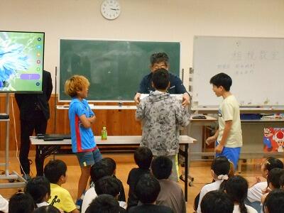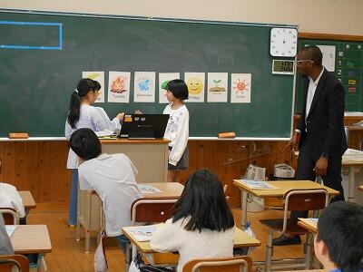 オンライン交流学習の当日は、はじめお互いに緊張ぎみでしたが、次第に緊張がほぐれ楽しい雰囲気でお互いの情報を伝え合うことができました。マンゴーやチキン南蛮などの美味しい食べ物や、野生動物のウミガメ、方言である「よだきい」の意味など、川西小の子どもたちが楽しく学べるよう工夫していました。お互いにとって素晴らしい交流の時間となりました。