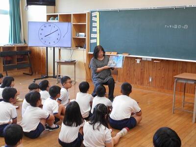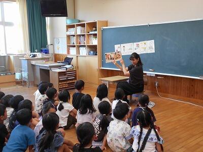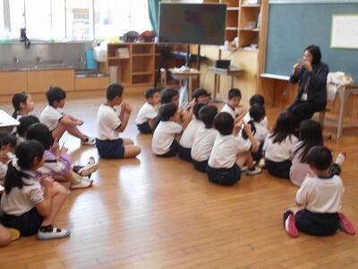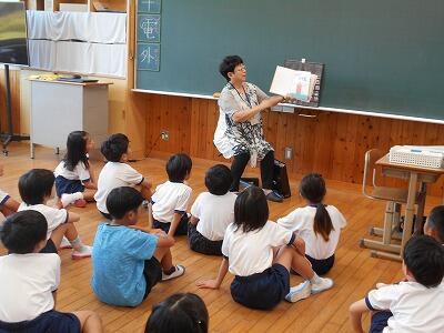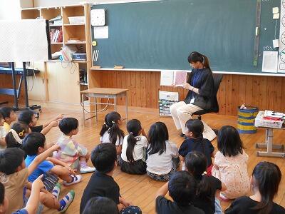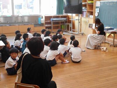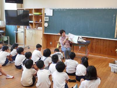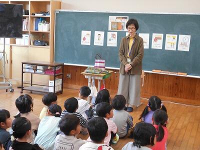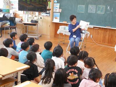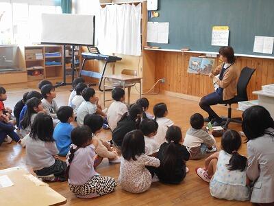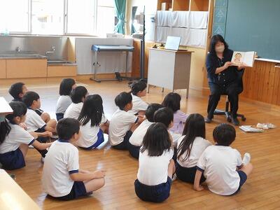 上学年と下学年に分かれて2日間にわたり開催してくださいました。子どもたちは、それぞれの発達の段階に応じた絵本やお話を楽しむことができました。