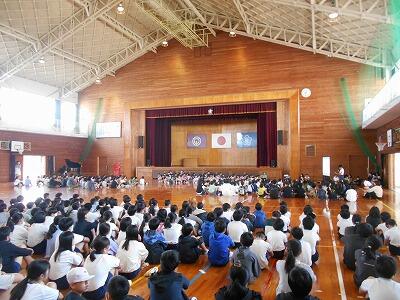 4年生1人1人の顔がとても真剣な表情で、一体感が感じられます。これまで何度も練習を重ねてきたことが十分に伝わってきました。また、聴いている他の学年の子どもたちも静かに真剣に聴いていることが分かりました。