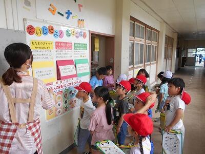また、栄養教諭(後藤先生)から保護者の皆様へ、給食献立の工夫や調理室の様子、食事のマナー、朝ご飯の大切さなどについてお話がありました。