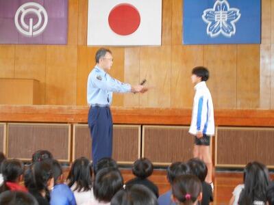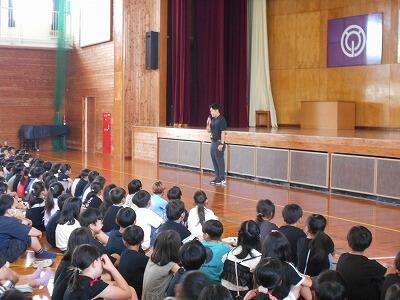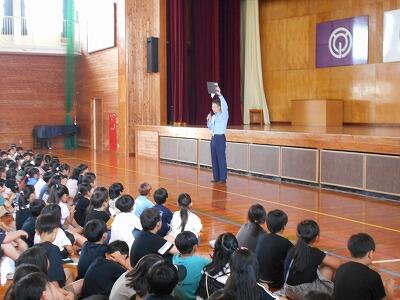 「校長先生の話」では、「自分の命は自分で守る」ことの大切さと、良いことと悪いことの区別をつけ「心のブレーキ」をかけることの必要性について話しました。