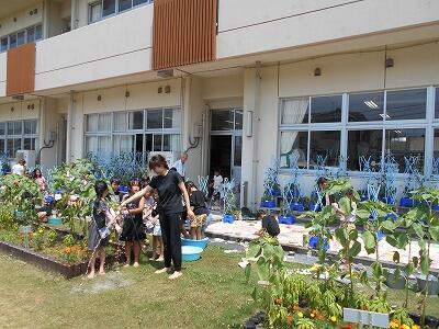 例えば、プールの熱中症予防のための寒冷紗設置、体育館前の大きく立派なソテツの手入れなど、普段、教職員ができない部分での整備を率先してされています。心より感謝いたしております。