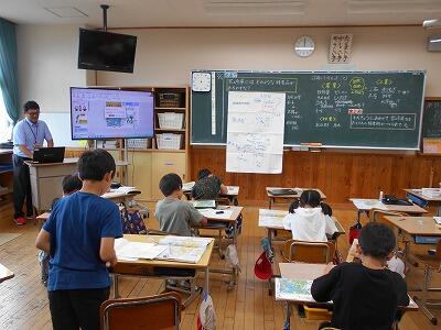 事前に川西小学校から、宮崎県の特産品などについて教えてほしいとのご依頼があったので、本校の4年3組の子どもたちは意欲的に調べ学習を行い、川西小学校の子どもたちに伝えることをイメージしながら丁寧に情報をまとめていました。